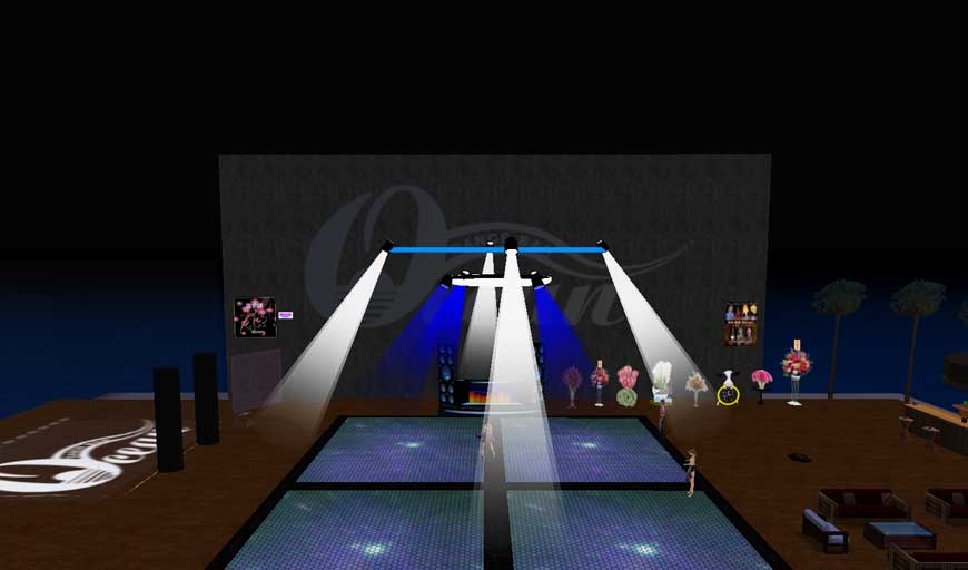 中央ステージ前の巨大ロゴはスクリーンになっており、ダンスフロア左のフロアとも連動しています。