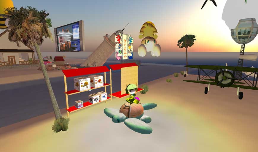 俺が普段、釣り竿下げて行商広場を乗り回している亀は、『Yumix Land』北西角にある『きぐるみや』さんから頂いたものなのですが、今日、また、新たに、子亀が加わりました!