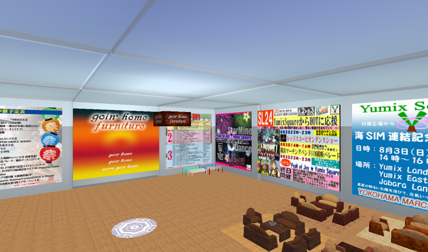 なお、家具店のある「Gunma JohoCity Japan」SIMでは、中央広場にて、SL24夏祭りのライブ中継をご覧いただけます。