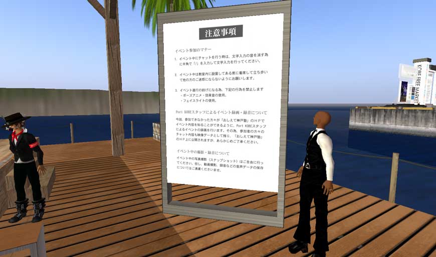 Second Life初心者向けの利用ガイドや、神戸の歴史や町並み等を学べます。
